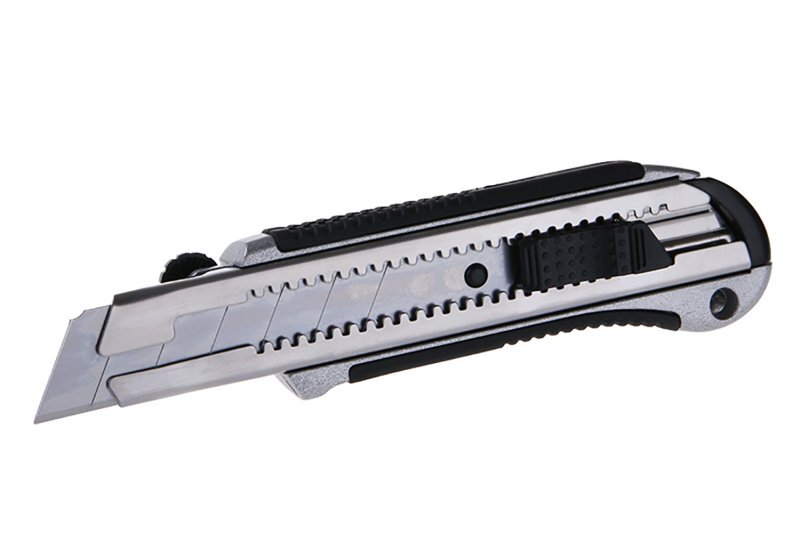 Profesionální odlamovací nůž, přesné zpracování - kvalitní materiály a ergonomie, odolný a přesný posuv s automatickou aretací, pojistná šroubková aretace, šířka čepele 25mm, baleno na blistru. przeczytaj całość