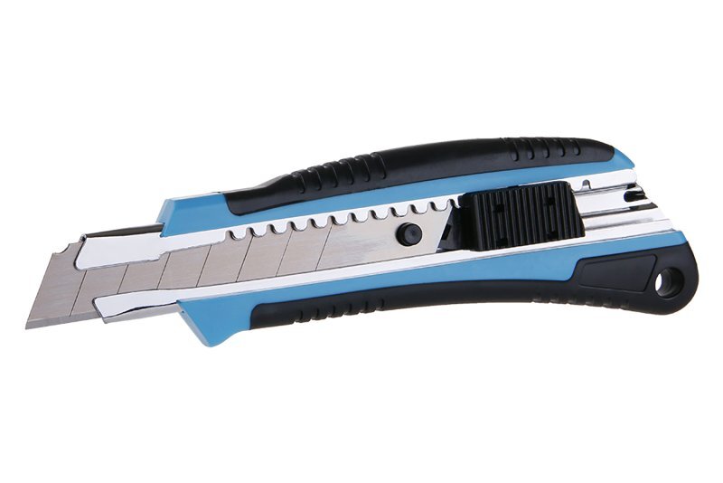 Odlamovací nůž FESTA 18mm, kvalitní materiály, ergonomický tvar s protiskluznou úpravou, kovová lišta, automatická posuvná aretace, do nože lze umístit až 2 náhradní břity, blistr. przeczytaj całość