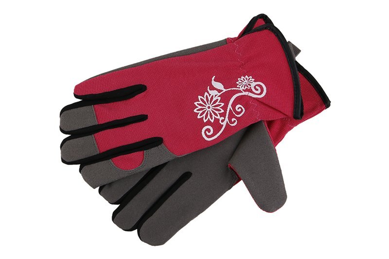 Rukavice speciálně vyvinuté pro zahradní práce z umělého semiše v dlani, hřbet rukavice je z elastické tkaniny Spandex, se stahovací gumičkou na zápěstí, ozdobný potisk. Velikost 9. przeczytaj całość