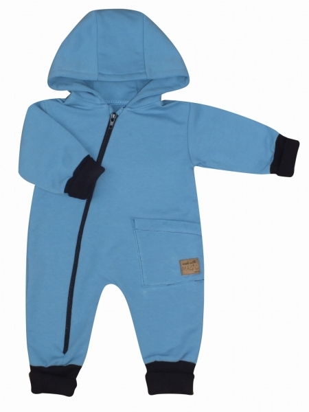 Teplákový dětský overal bez šlapek s kapucí Magic, modrý, vel. 74; 74 (6-9m)