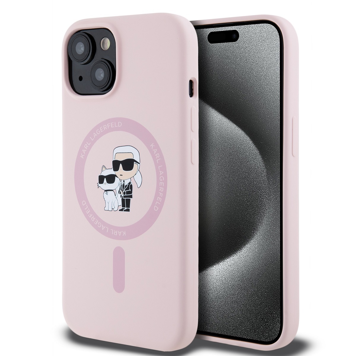 Karl Lagerfeld Liquid Silicone Karl and Choupette Magsafe Zadní Kryt pro iPhone 15 Pink