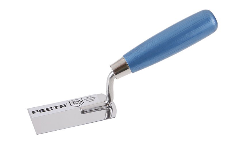 Lžíce vymazávací nerezová FESTA 40 mm s dřevěnou ručkou. Kvalitní nerezová ocel. Slouží pro dokončovací práce ve stavebnictví. przeczytaj całość