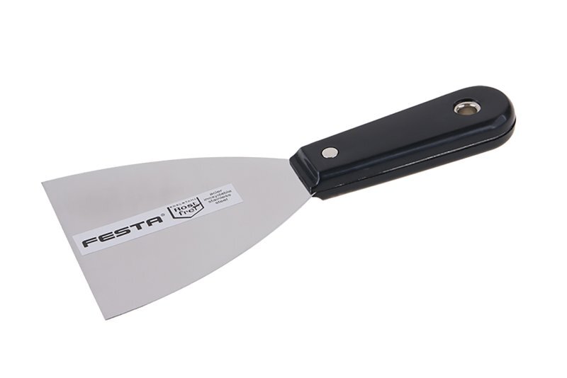 Špachtle nerezová FESTA 100 mm s plastovou ručkou. Je užíván ve štukatérství, malířství, natěračství, opravách karosérií nebo při umělecké tvorbě apod. Je vhodná pro roztírání sádry nebo jiných tmelících hmot či k odstraňování staré malby a nátěrů. przeczytaj całość
