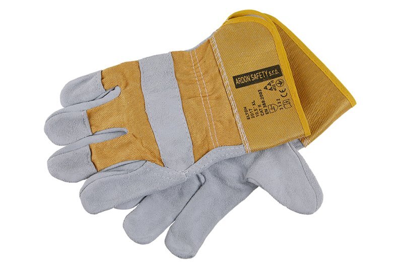 Kvalitní šedá hovězí štípenka, hřbet z červené bavlny, vyztužená manžeta, CE EN 388, vel. 11. przeczytaj całość