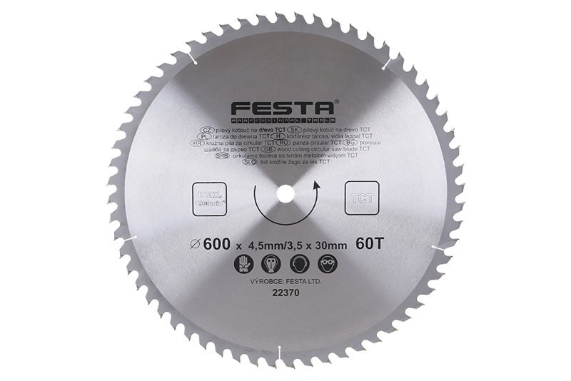 Główne zalety tarczy pilowej FESTA SK 600/4.5/30mm 60T