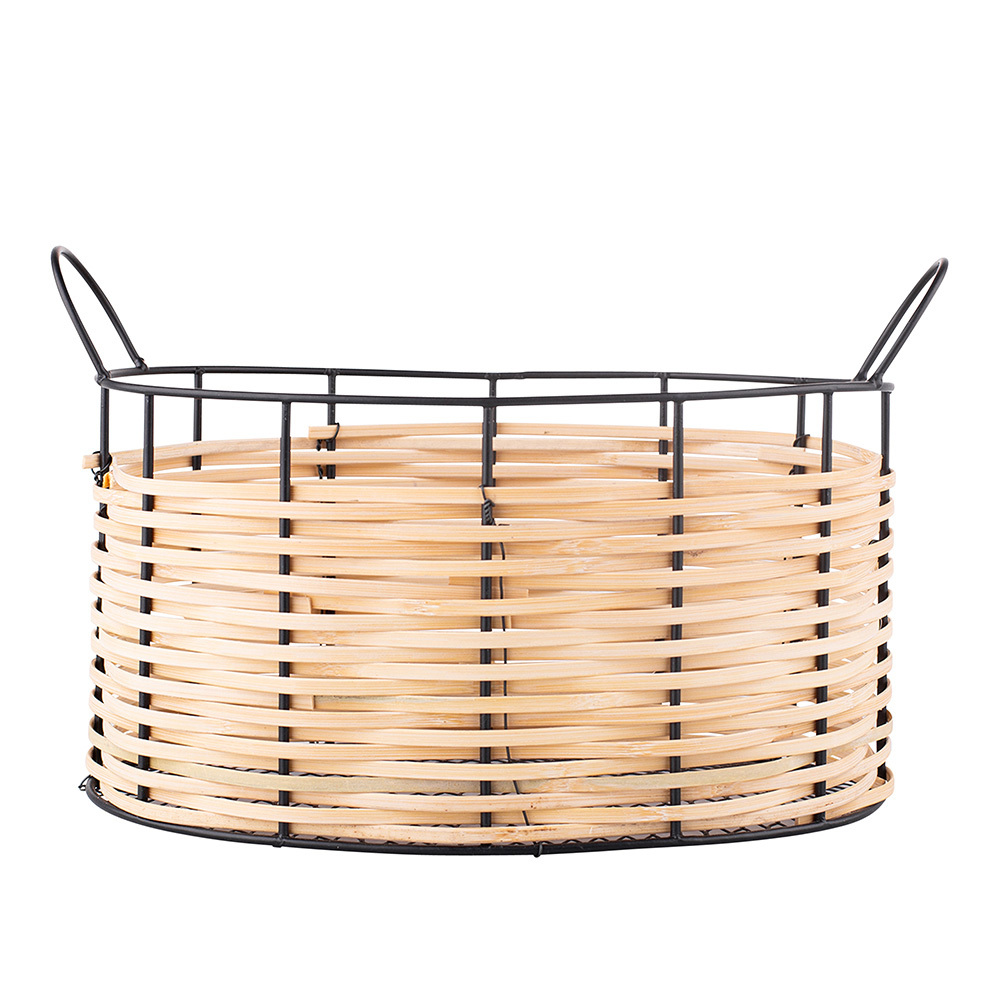 KOŠÍK METALOVÝ S SLÁMKOVÝM ZAKONČENÍM 33X20X15CM