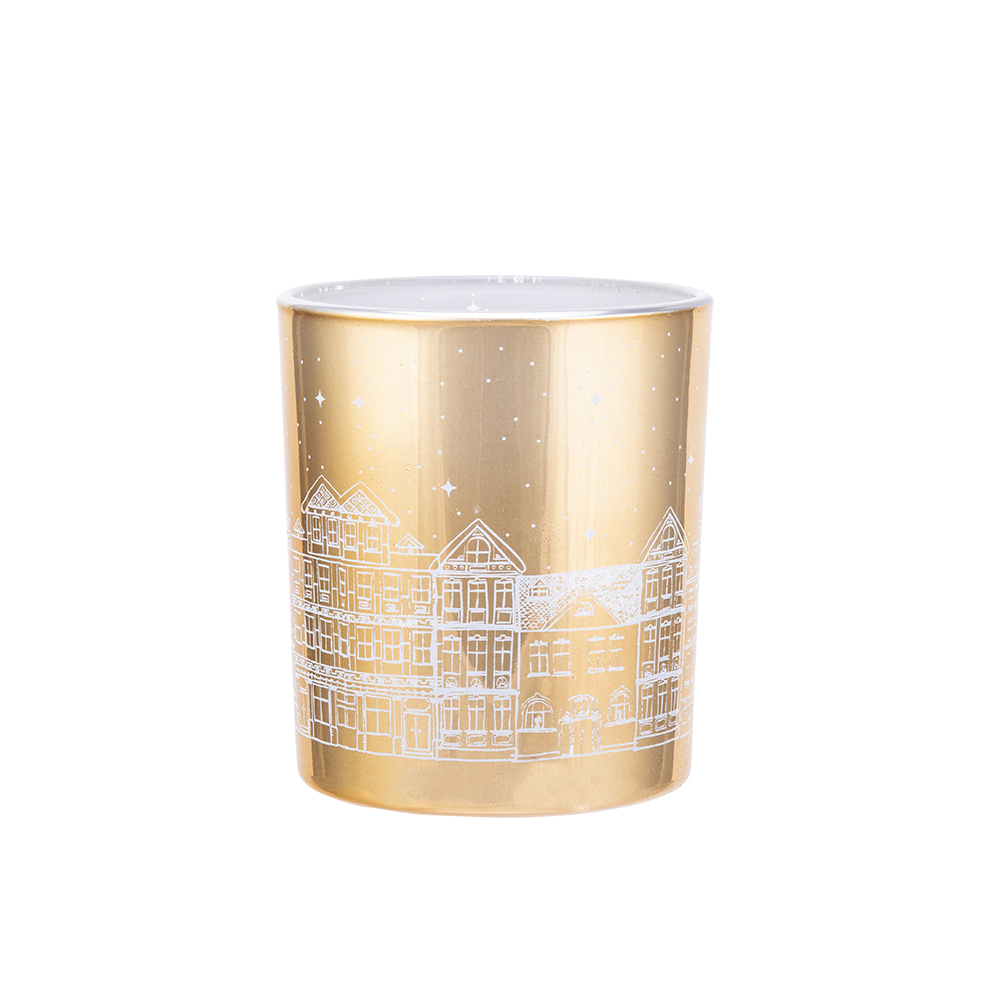 ŚKLENĚNÝ ZLATÝ SVÍČNÍK S SVĚTLÝM VNITŘKEM 7X8CM DEKORACE KAMENICKÉ DOMY