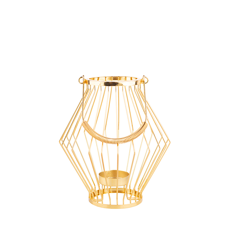 STOJAN NA SVÍČKY S METALOVÝM RÁMEČKEM A DRŽADLEM 19X19X20CM ZLATÝ