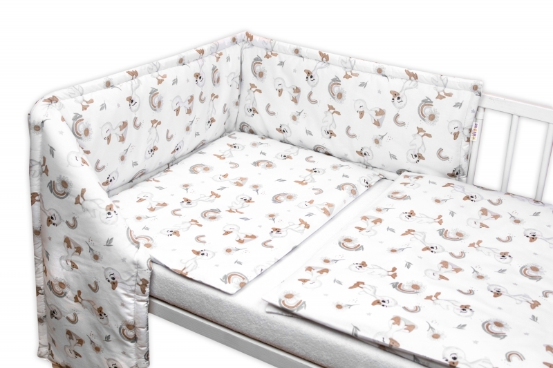 Mantinel s povlečením do postýlky, 3D sada - Kačátko, bílá/béžová, 135x100 cm; 135x100