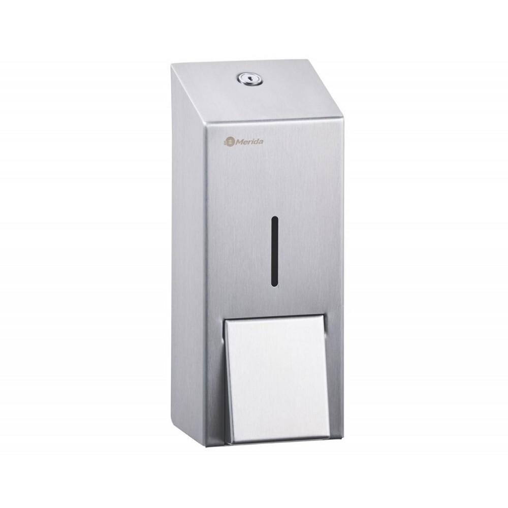 dávkovač mýdla nebo dezinekčního gelu na dolévání viz. související produkty, objem nádobky je 800 mlvyrobeno z matné nerezové oceliboční spoje svařené a broušené, neviditelné pantyuzamykatelné, zajištěno odolným ocelovým cylindrickýmzámkem na klíč (zámek v jedné rovině s povrchem...