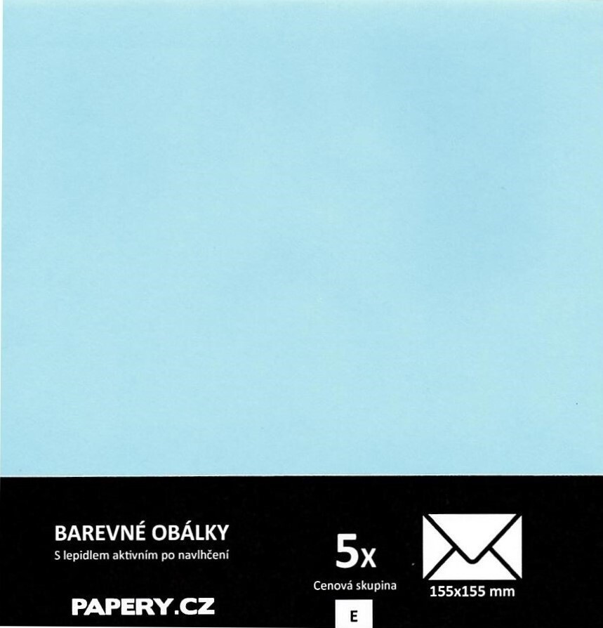 HYBLER S.R.O. barevná obálka 155x155 mm PASTELOVÁ MODRÁ, 5 kusů, 115 gm2, olizová HBLR115