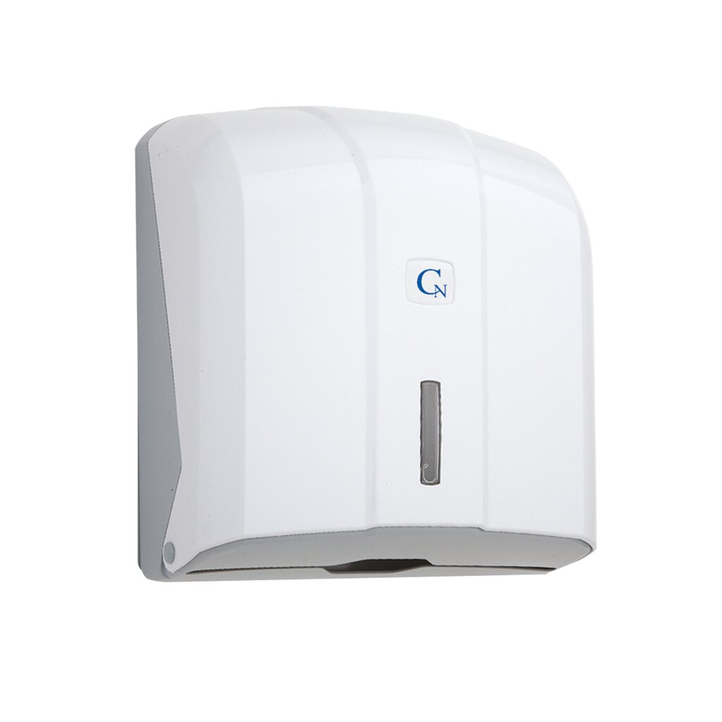 Wymiary głębokość, szerokość, wysokość: 130x270x280 mm Nabudowany podajnik na papierowe ręczniki "ZZ" w rozmiarze 23x25 cm, ewentualnie uniwersalny także dla innych rozmiarów i rodzajów złożeń. Wykonany jest z białego tworzywa ABS z jasnoszarą podstawą. Ma elegancki wygląd i przy niewielkich wymiarach może pomieścić do 400 sztuk ręczników. Można montować na śruby lub za pomocą taśmy samoprzylepnej