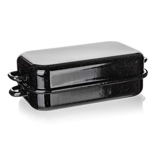 Przygotuj swoje ulubione danie w emaliowanej brytfannie Banquet Culinaria Black. Składa się z 2 części. Oba elementy możesz wykorzystać jako oddzielne brytfanny o pojemności 3,6 l i 4 l. Upieczesz w nich drożdżówki, zapiekane ziemniaki, makarony, nadzienie czy inne przysmaki. Możesz też włożyć mięso do jednej z nich, a drugą użyć jako pokrywki.