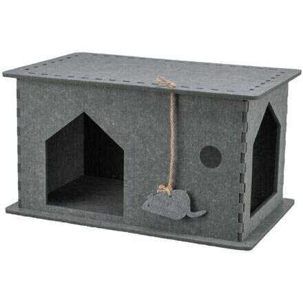 stabilní tvar snadné skládání se 2 vchody s hračkou na boční straně izolační a špínu odpuzující  materiál materiál: plsť (polyester) velikost: 54 x 30 x 35 cm barva: antracitová przeczytaj całość