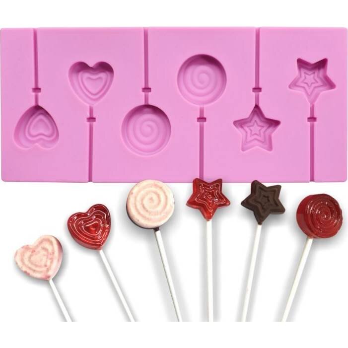 Silikonová forma na lízátka ve tvaru hvězdy, kolečka i srdíčka. przeczytaj całość