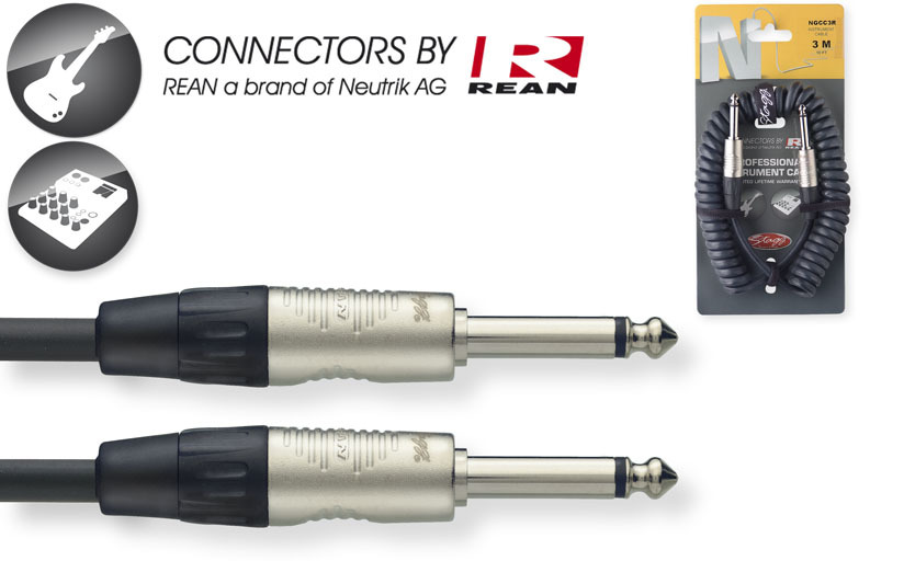 Profesionální nástrojový kabel, N-série, spirálovitý, s koncovkami REAN, jack zástrčka mono / jack zástrčka mono, délka 3m, průměr 6mm. Barva černá. V souladu s RoHS. przeczytaj całość