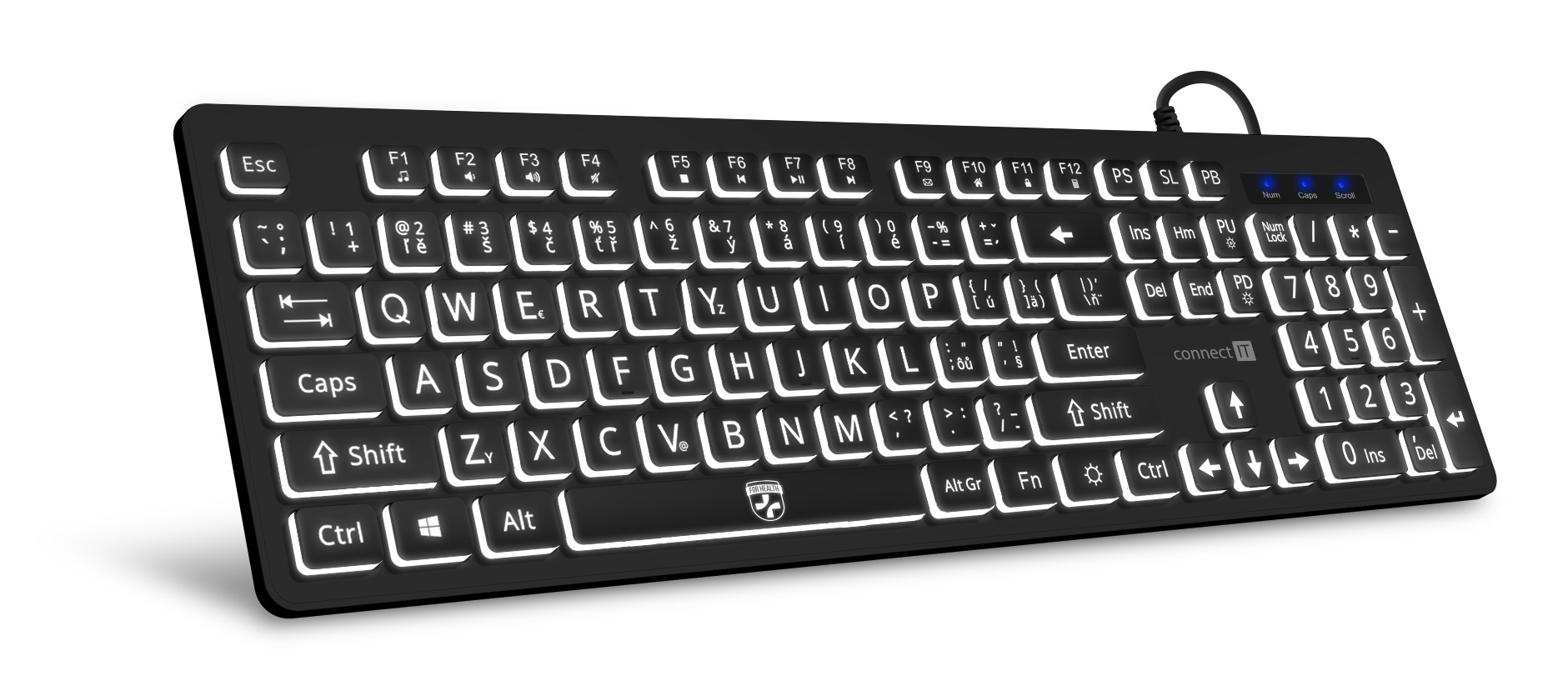 CONNECT IT FOR HEALTH LargeFont klávesnice s velkým fontem, CZ + SK verze, ČERNÁ