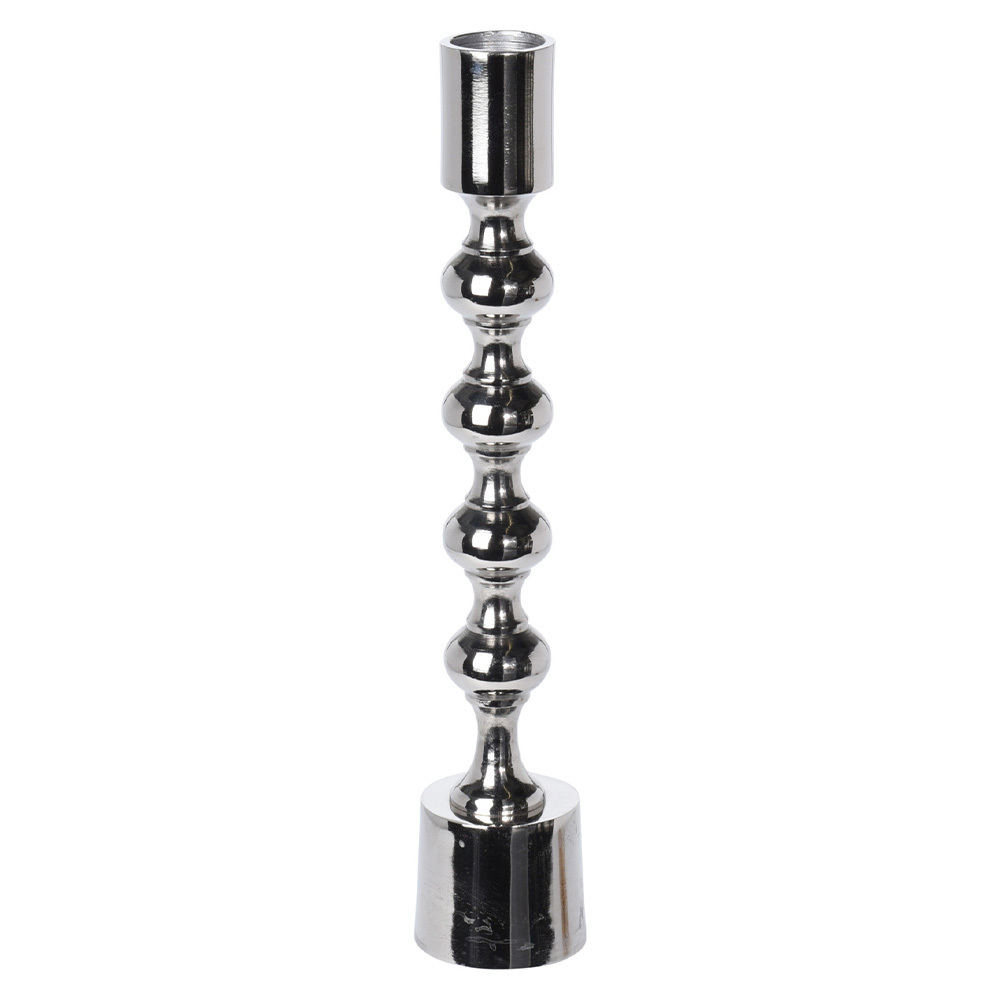 Stylový kovový svícen ve stříbrném provedení na svíčku do průměru 20 mm.Hmotnost: 350gMateriál: hliník przeczytaj całość