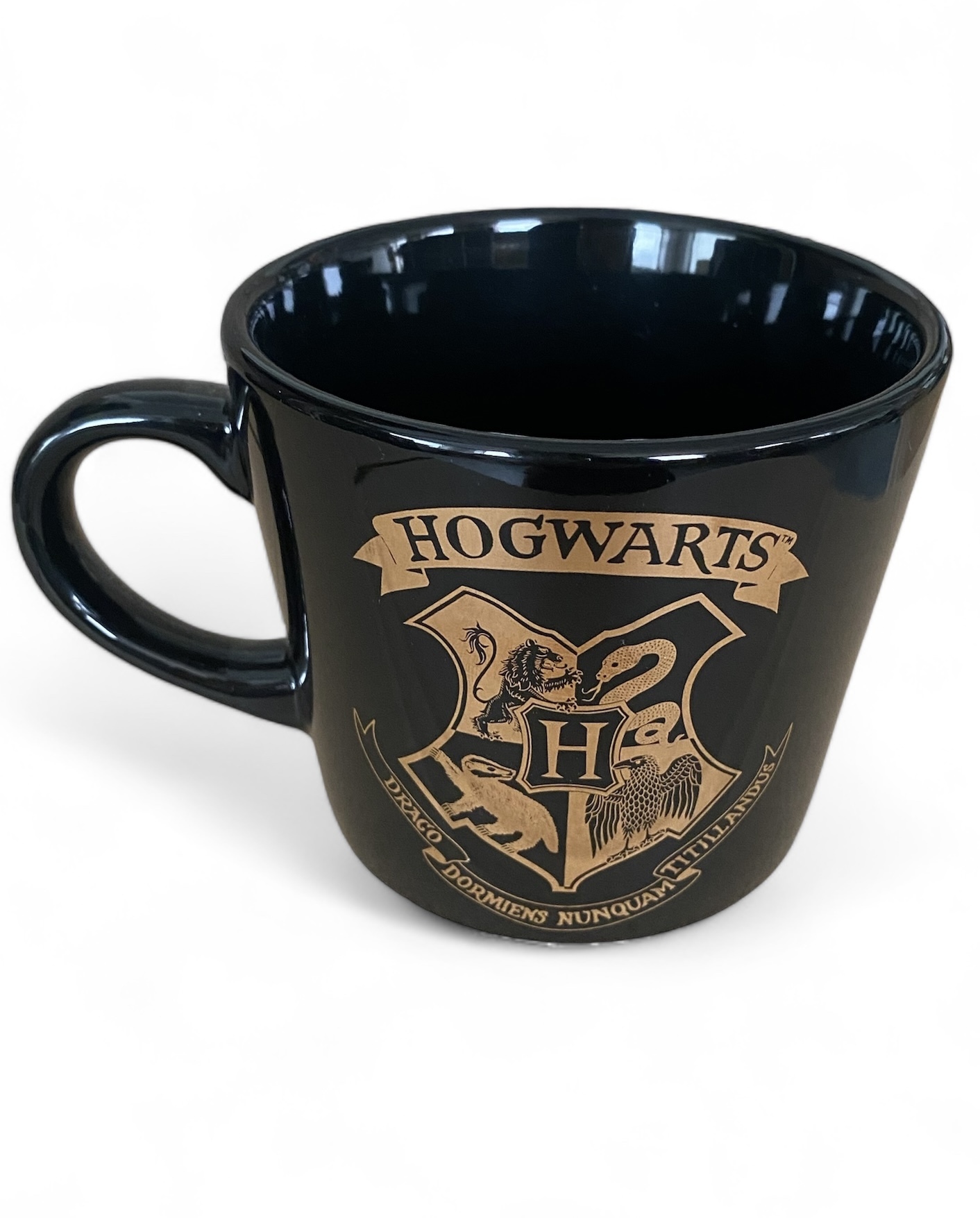 Černý keramický hrnek ze zlatými detaily a nápisem Hogwarts.Balený v pěkné krabičce, vhodný jako dárek. przeczytaj całość