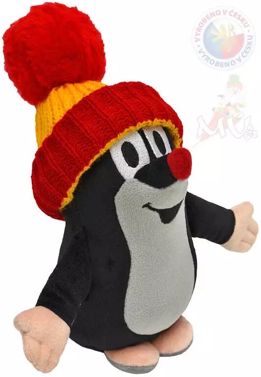 MORAVSKÁ ÚSTŘEDNA PLYŠ Krtek (Krteček) 20cm mluvící červeno-žlutý kulich Zvuk
