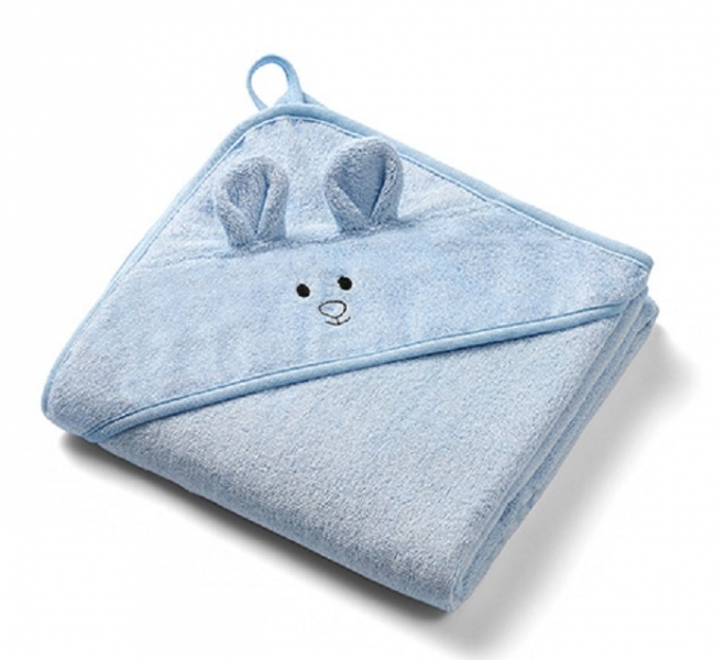 Bambusová osuška pro miminko s kapucí Myška, 100x100cm - modrá
