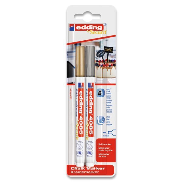 Křídový popisovač edding 4085 je nepermanentní fix ve formě tekuté křídy. Tenký hrot nabízí čistou precizní stopu 1-2 mm. Inkoust na bázi vody vyniká vysokou krycí schopností, proto je napsaná stopa velmi dobře vidět. Křídový popisovač lze využít k psaní na okna, skla, plexiskla, zrcadla a tmavé tabule.