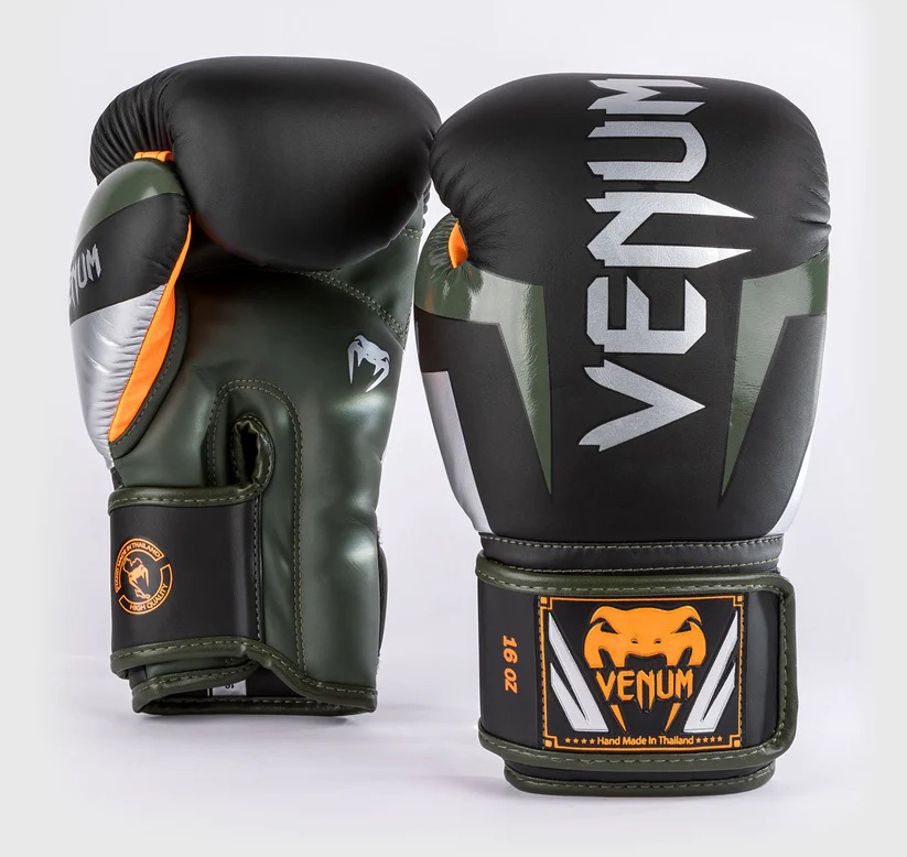 Boxerské rukavice Venum Elite černá/stříbrná/khaki Velikost: 14oz
