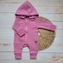 Dětský teplákový overal bez šlapek s odepínatelnou kapucí, bavlna, růžová, vel. 86; 86 (12-18m)