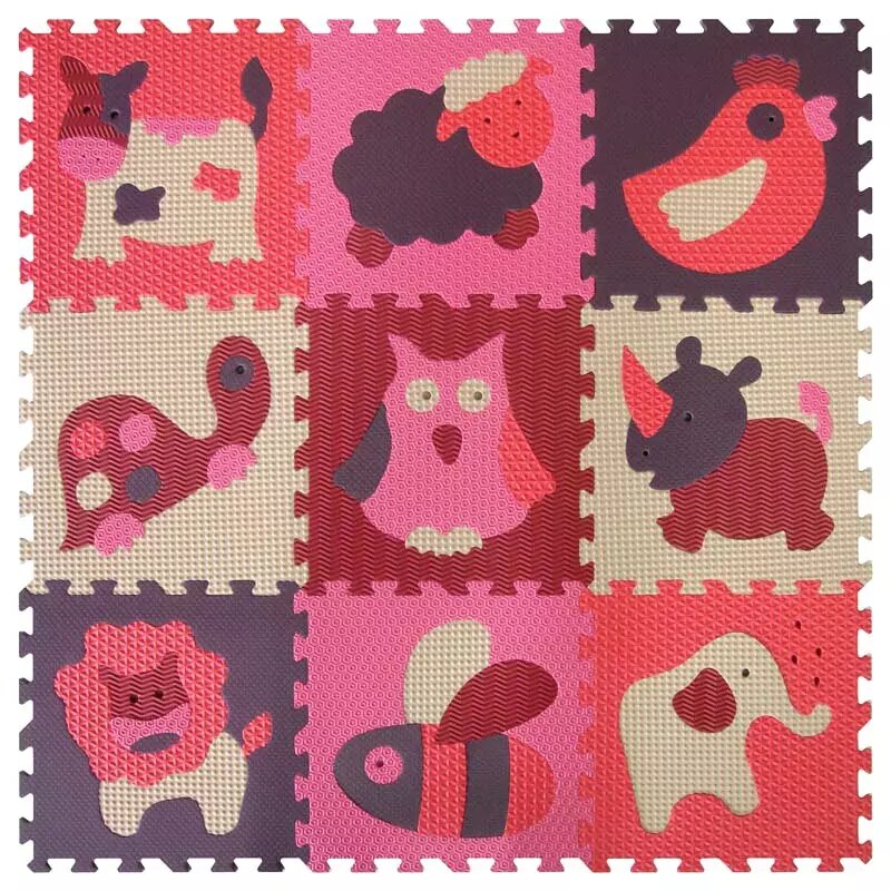BABY GREAT Pěnové puzzle Zvířata červená-růžová SX (30x30)