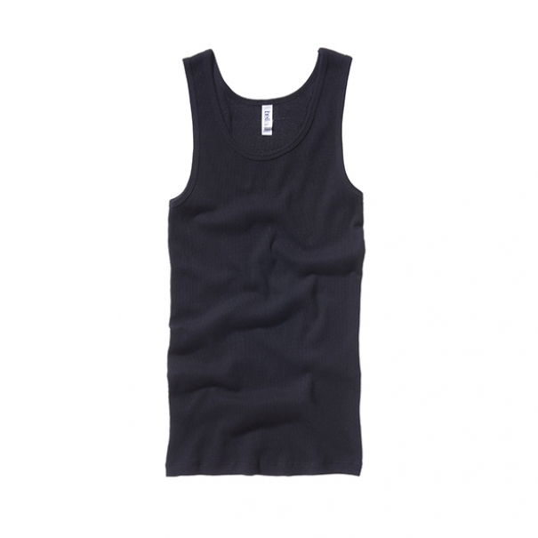 Bavlněné dámské tílko od firmy Bella+Canvas. Má 2x1 žebrovaný náplet, lemování u výstřihu a kolem rukávů a boční švy. przeczytaj całość