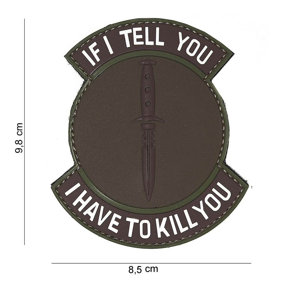 Gumová nášivka 101 Inc nápis If i tell you - hnědá