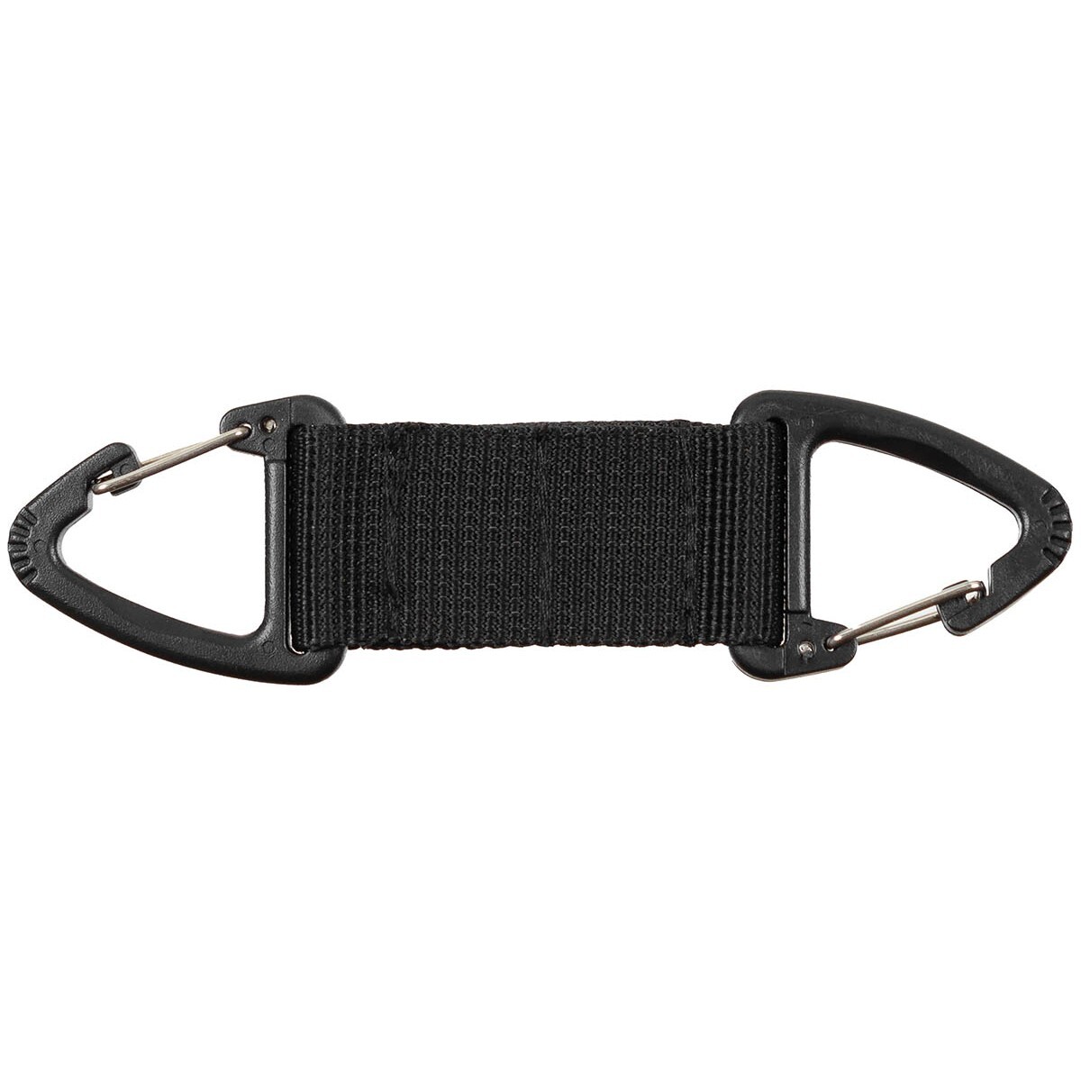 Karabina pro zavěšení rukavic, klíčů, výstroje atd.Jedná se o 2 karabiny propojené třemi polyesterovými pásky, které jsou prošité.Materiál:karabina: 100 % plastpojistka karabiny: 100 % ocelpásek: 100 % polyester przeczytaj całość