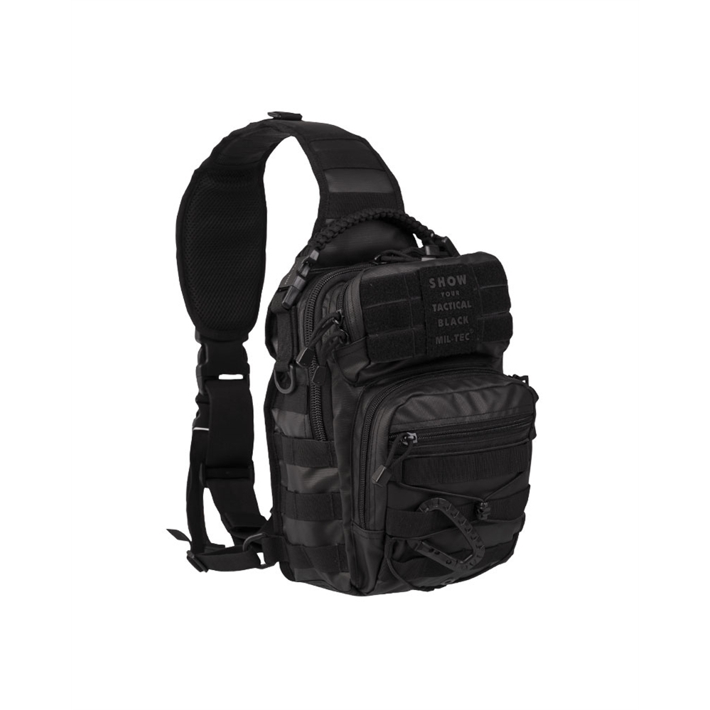 Praktyczny 10-litrowy plecak z systemem MOLLE niemieckiej firmy Mil-Tec. Do przechowywania niezbędnych rzeczy służy główna duża komora (z trzema dodatkowymi wewnętrznymi kieszeniami na rzep i klasycznym zamkiem) oraz przednia kieszeń z organizerem. Wyściełany, ergonomicznie ukształtowany pas naramienny o szerokości 7,5 cm umożliwia wygodne noszenie na jedno ramię. Plecak ma także wyściełane plecy, regulowany pas biodrowy z możliwością szybkiego odpięcia. Wszystkie zamki są dwukierunkowe.