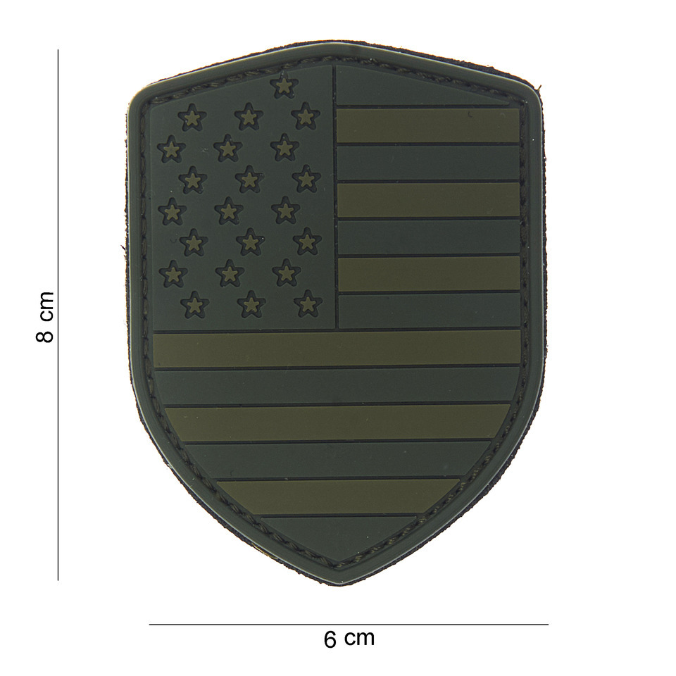 Gumová nášivka 101 Inc vlajka štít USA - olivová