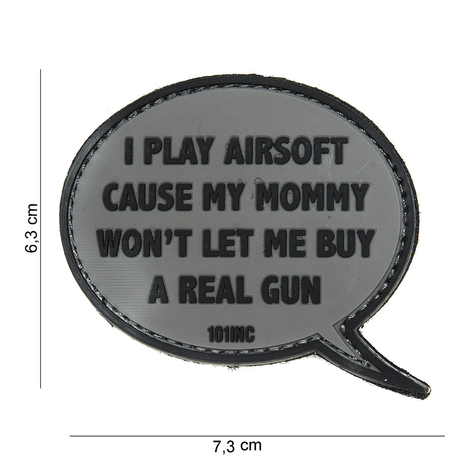 Gumová nášivka 101 Inc nápis I Play Airsoft - šedá