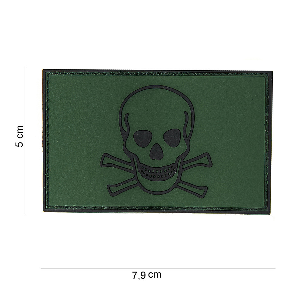 Gumová nášivka 101 Inc Skull and Bones - olivová