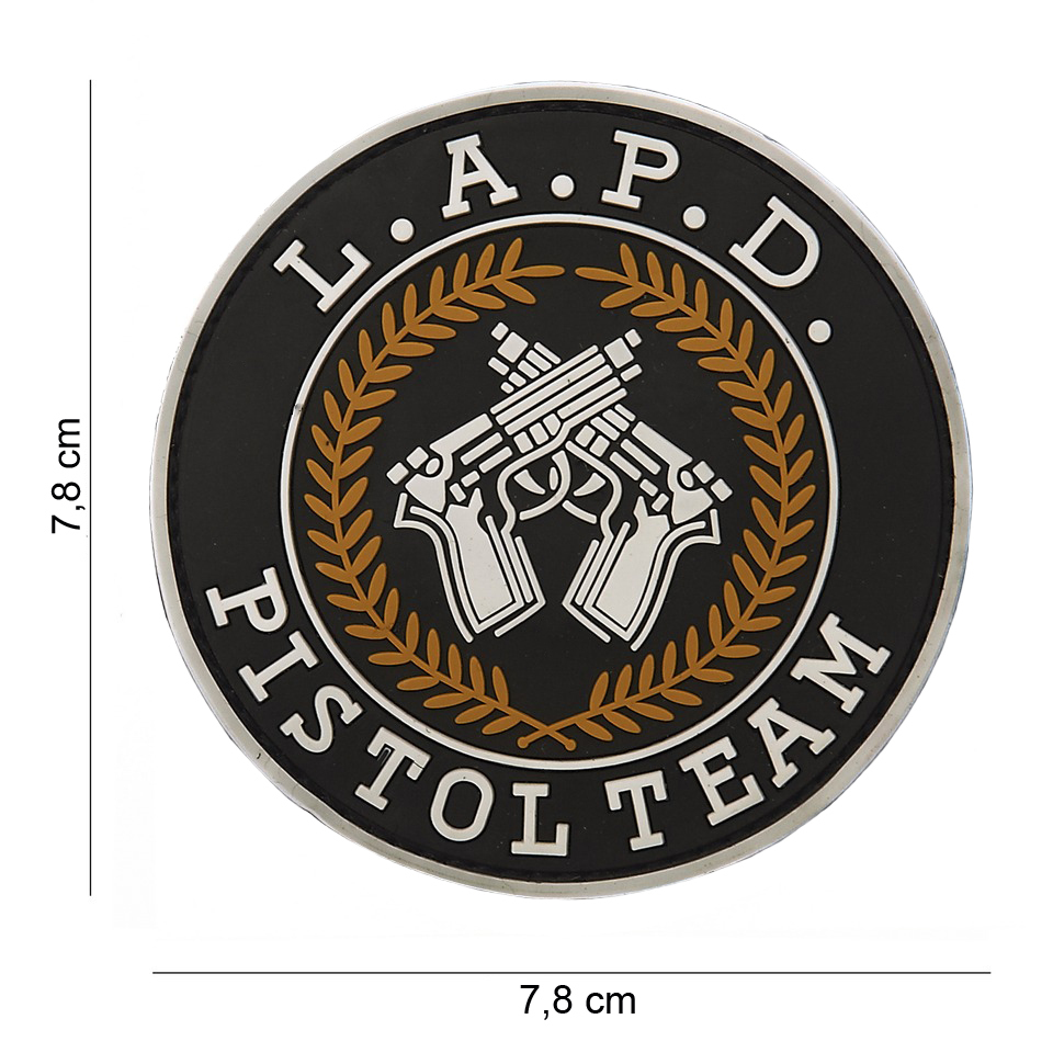 Gumová nášivka 101 Inc znak L.A.P.D. Pistol Team - černá-bílá