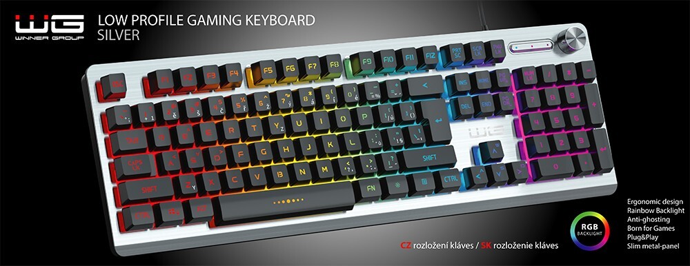 Herní klávesnice podsvícená (drátová) (Stříbrná)