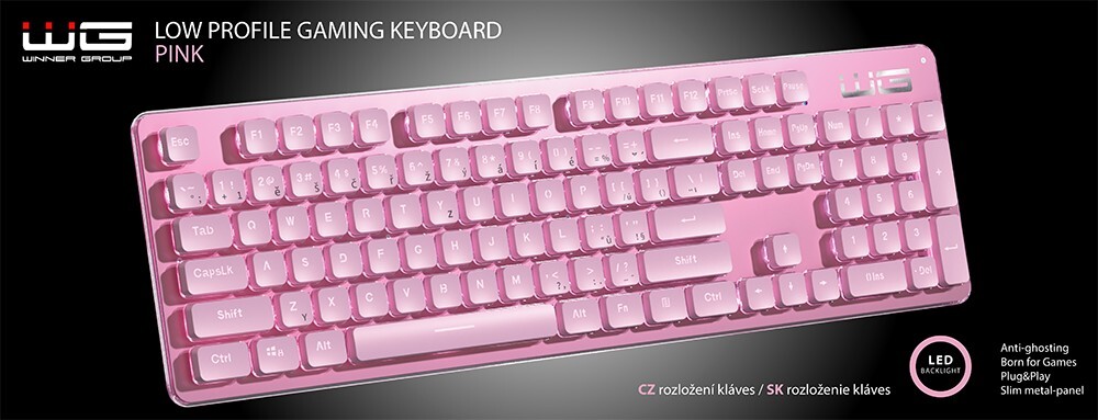Herní klávesnice podsvícena (drátová) (Růžová)