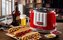 5 stupňů ohřevu Automatická funkce vysouvání 2 přihrádky na žemle, 2 přihrádky na párky Tlačítko STOP Příkon 650 W Hodí se na dětskou oslavu nebo zahradní party Americký retro design z 50. let Snadná údržba i... przeczytaj całość