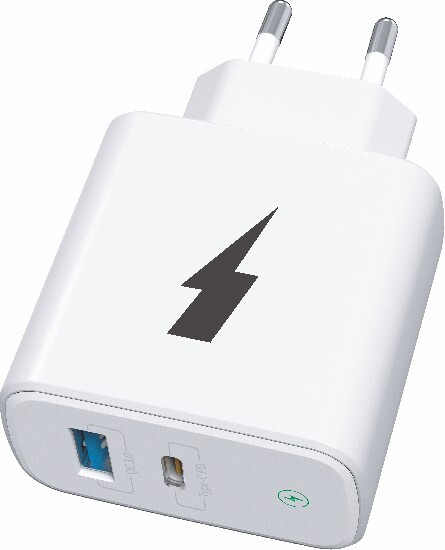Síťová nabíječka je univerzálním příslušenstvím pro nabíjení telefonů a tabletů. Disponuje USB-C výstupem s podporou Power Delivery. Druhým výstupem je klasické USB-A s podporou rychlého nabíjení Quick Charge 3.0. Maximální celkový výkon nabíječky je 38 W. Díky svým kompaktním rozměrům je nabíječka vhodným příslušenstvím i na cesty.