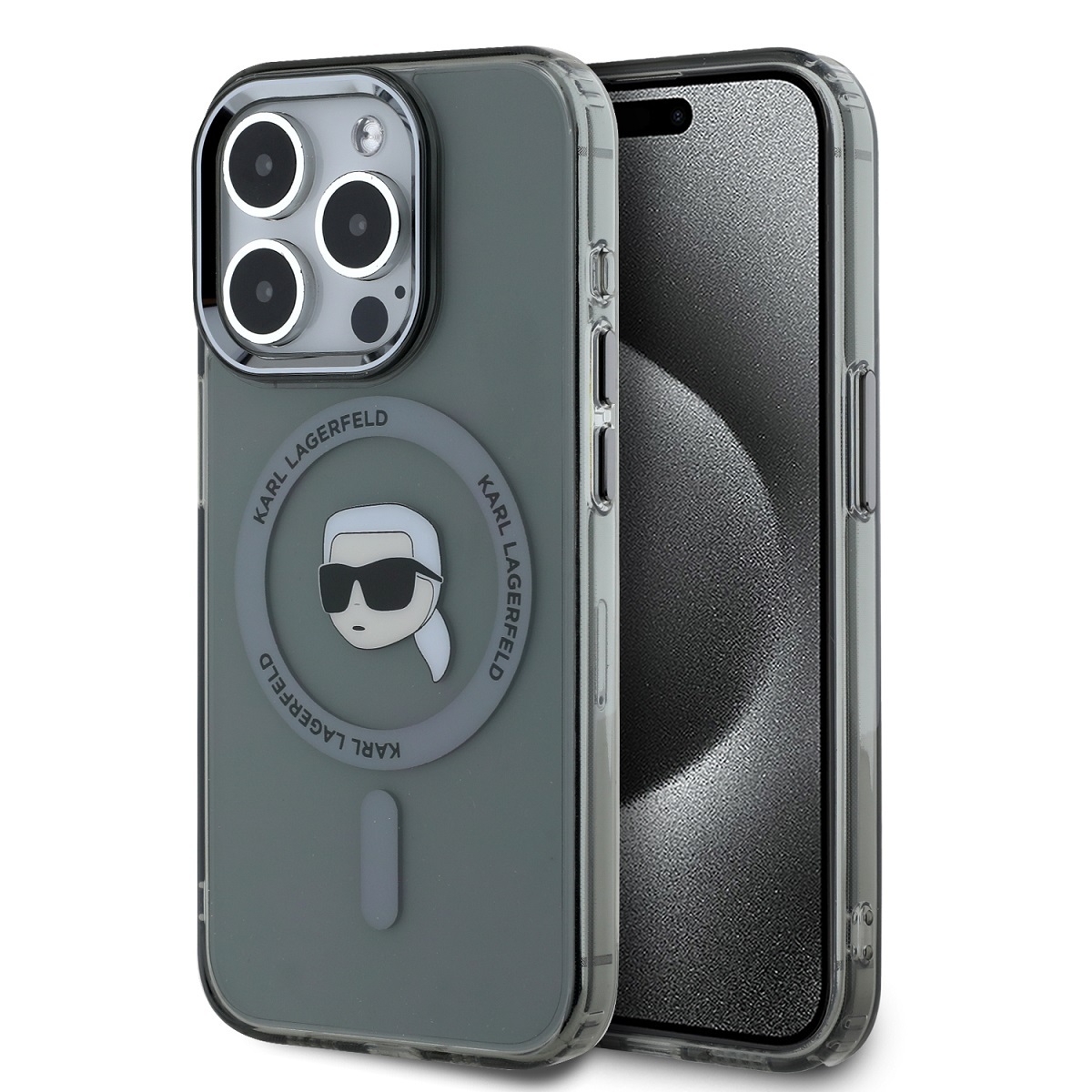 Karl Lagerfeld IML Karl Head Metal Frame MagSafe Zadní Kryt pro iPhone 15 Pro Max Black