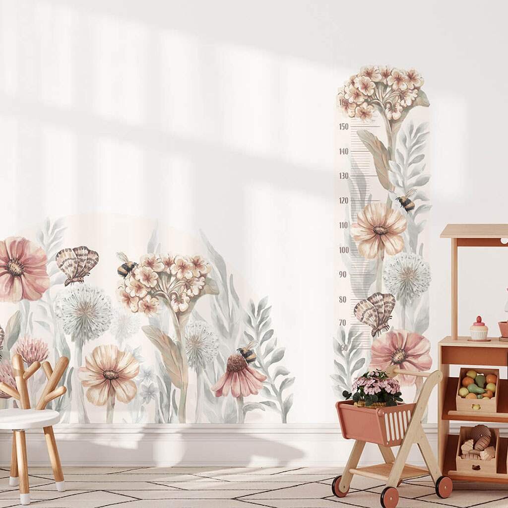 Krásná nálepka na zeď Polní květiny- výšková míra. Nálepka na zeď Wildflowers Height Measure , zdobená půvabnými akvarelovými květinami, motýly a včelami, je ideální volbou pro ty, kteří hledají klidnou a přirozenou dekoraci do dětského pokoje. Pokračujeme v tradici označování růstu dětí v...