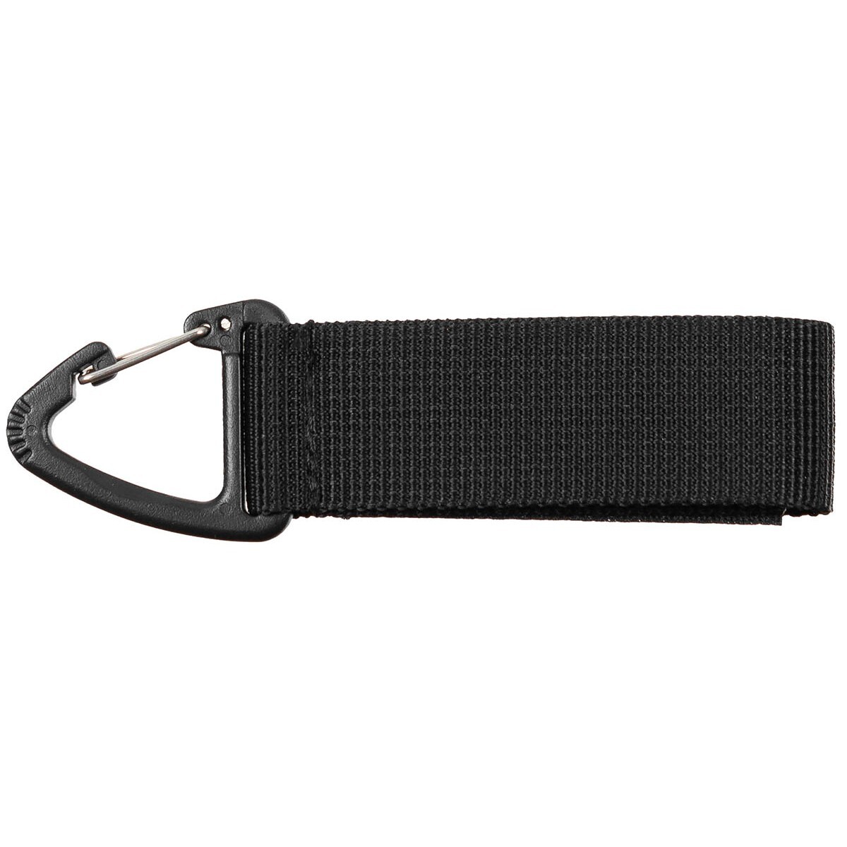 Karabina pro zavěšení rukavic, klíčů, výstroje atd.Jedná se o karabinu s polyesterovým páskem.Vlastnosti:• bezpečné uchycení pomocí poutka• se suchým• zipem z plastuRozměry:velikost poutka: cca 2,5 x 7 cmcelková délka: cca 11 cmrozměry karabiny: cca 3 x 3 cmMateriál:karabina: 100 % plastpojistka karabiny: 100 % ocelpásek: 100 % polyester