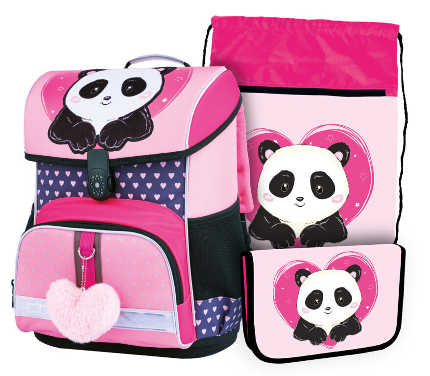 - PLYŠOVÝ PŘÍVĚSEK - aktovka je doplněná měkoučkým přívěskem ve tvaru srdce a hebká plyšová panda na víku přímo vybízí k pohlazení.