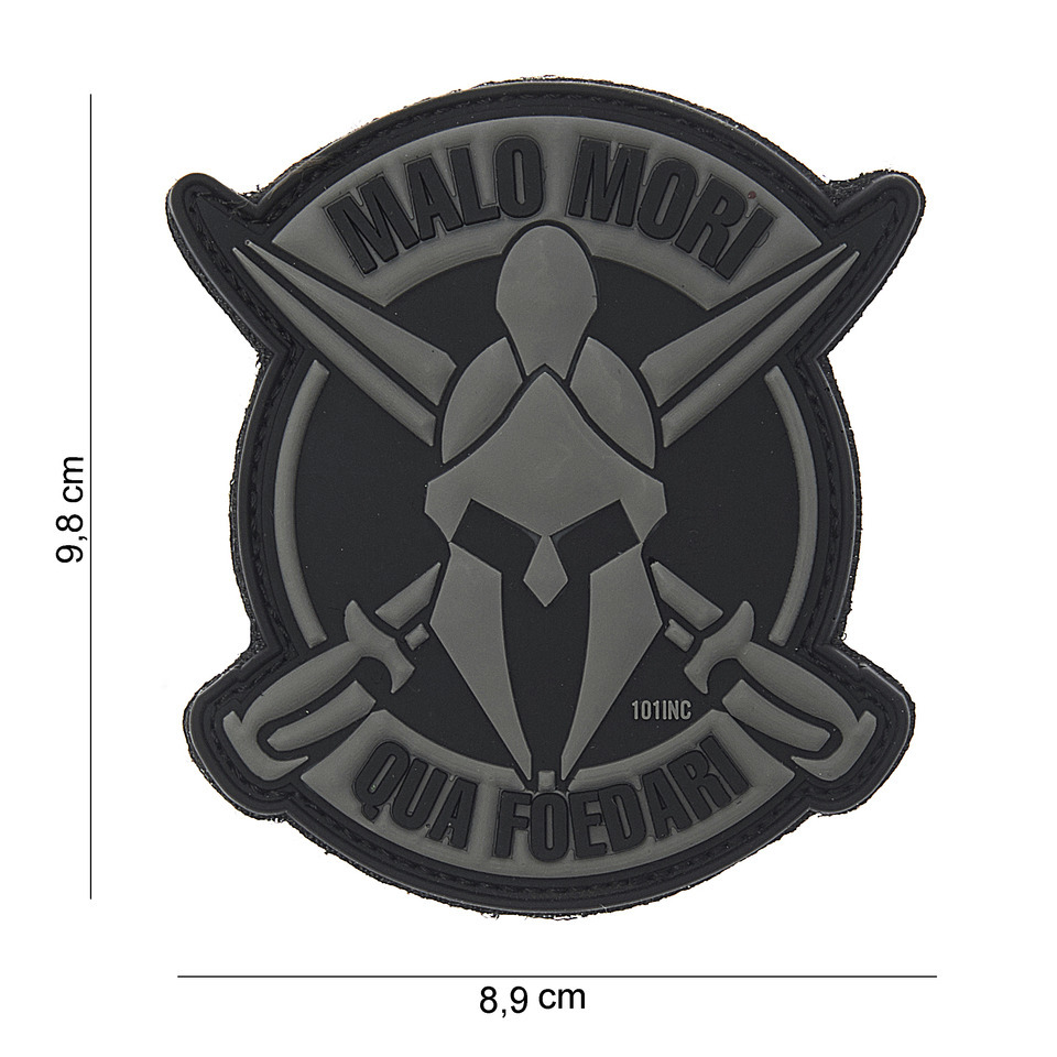 Gumová nášivka 101 Inc nápis Malo mori qua foedari - černá