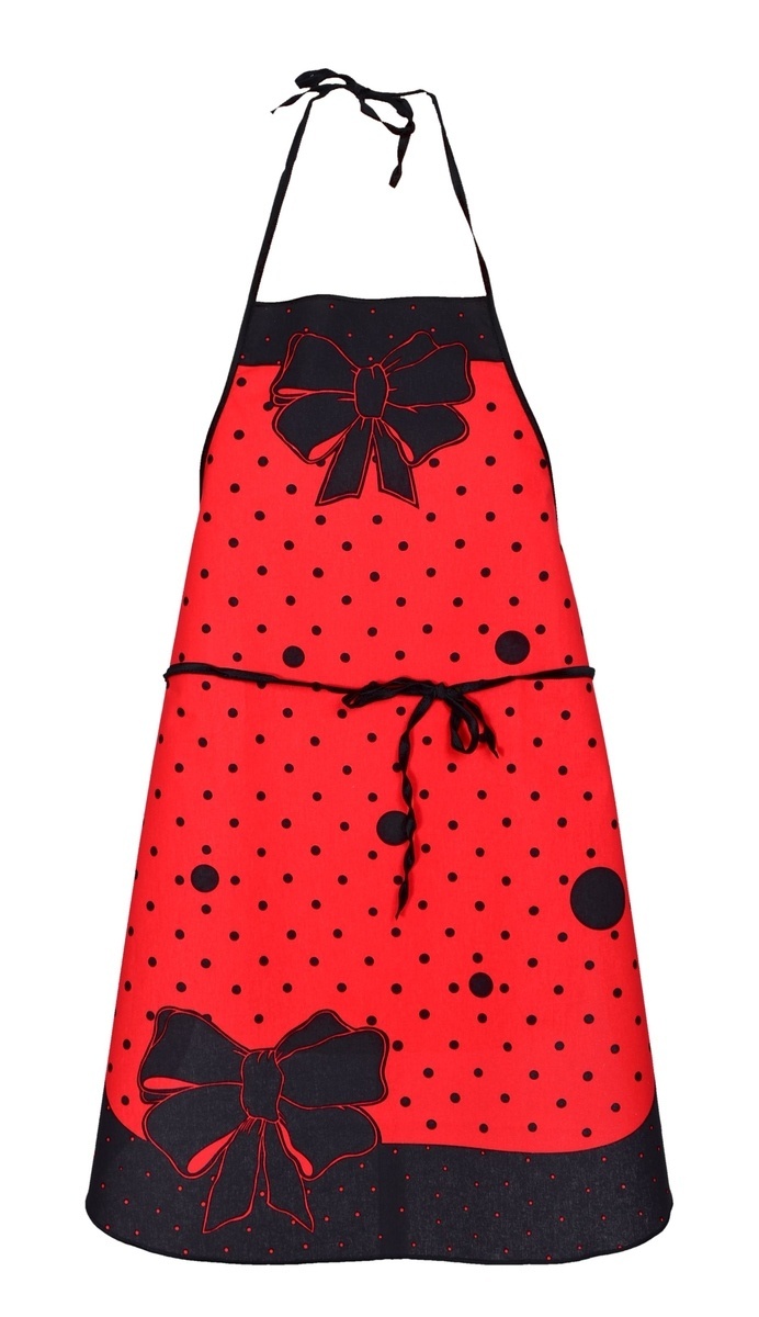 Praktická zástěra v dekoru stužky a teček působí velice vkustě a moderně.