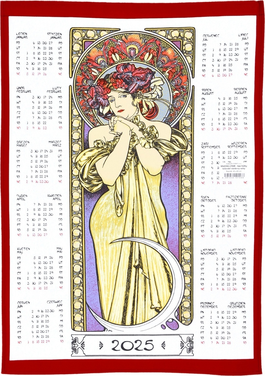 Kalendář textilní, Alfons Mucha - Lygie 2025 Bez hůlky