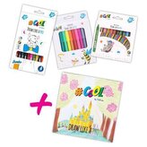 Školní balíček COOL BY VICTORIA 1: Pastelky, voskovky, fixy + DÁREK: Omalovánka, COOL BY VICTORIA
