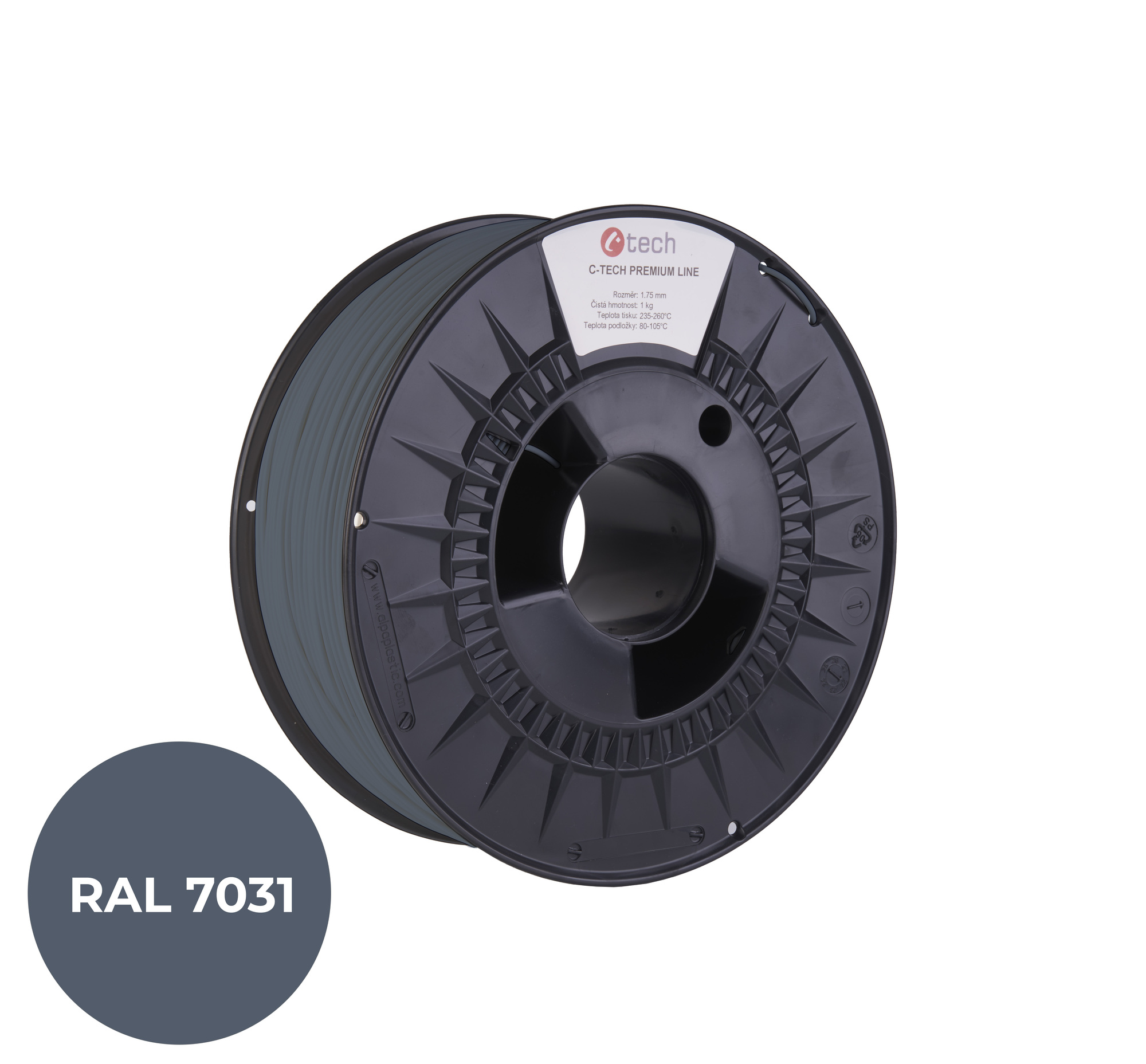 Tisková struna (filament) C-TECH PREMIUM LINE, PETG, šedomodrá, RAL7031, 1,75mm, 1kg